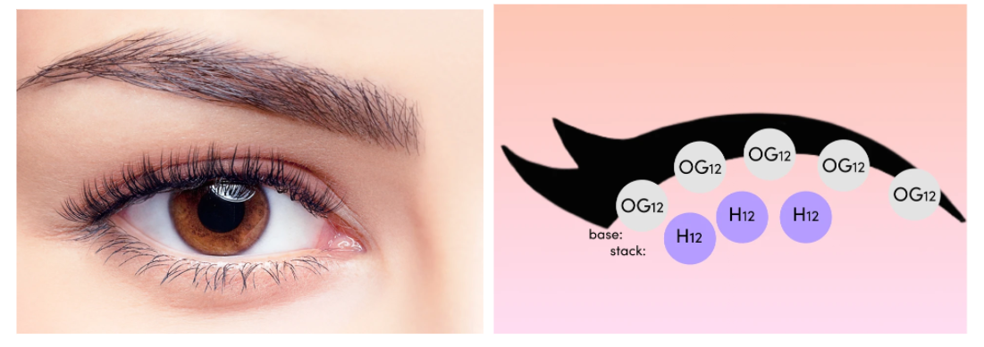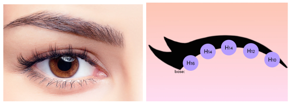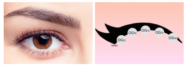If you’re nervous about the overwhelming effect of long extensions on your eyes, but still want an eye-catching look, stacking can do the trick! By combining medium-length Original and Hollywood clusters, this lash map defines hooded eyes beautifully without overshadowing them.