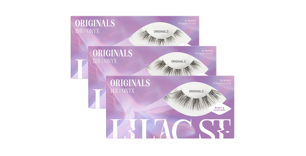 30 clusters, 1 set each in 10mm, 12mm, & 14mm. Originals are most similar to your natural lashes—just as soft, with evenly spaced fibers that gently criss-cross.