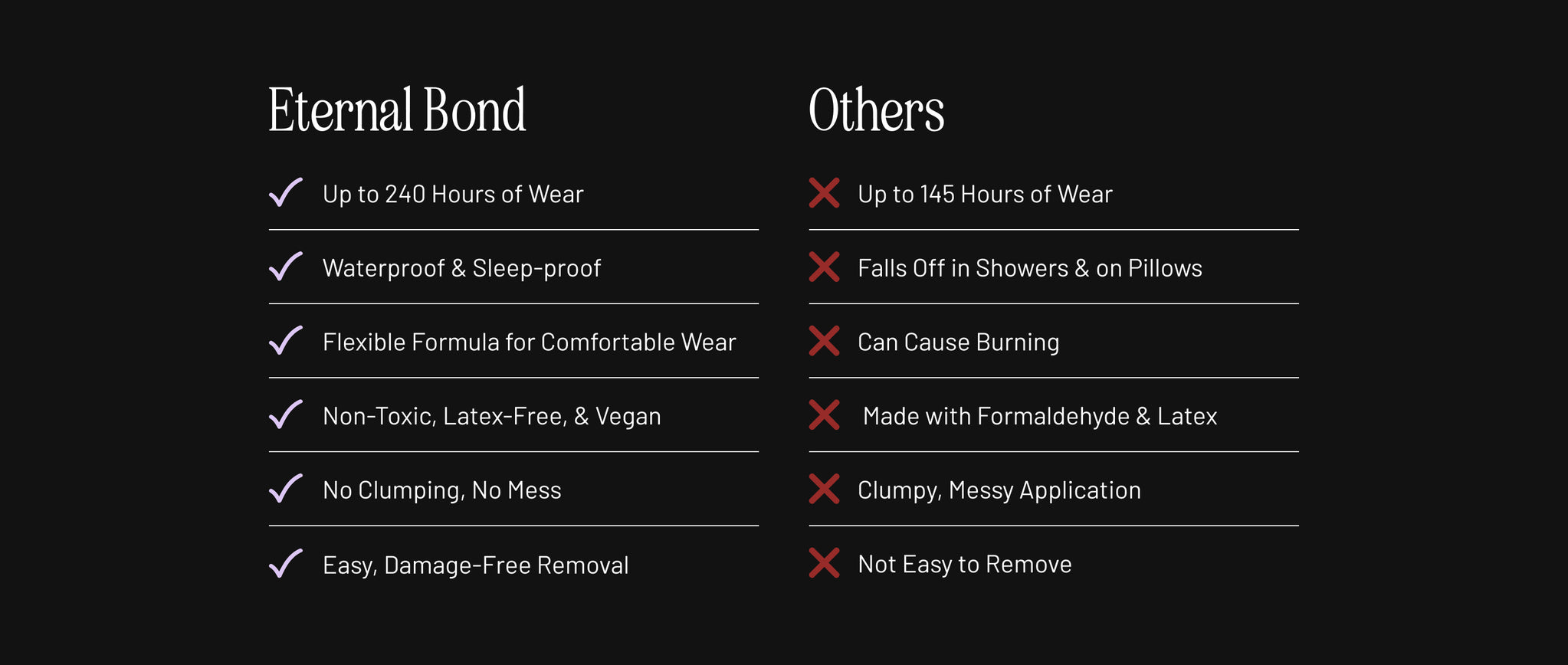 Applying too much glue will cause clumping & impact longevity. Dab a light coat at the base of natural lashes—do not apply like mascara.